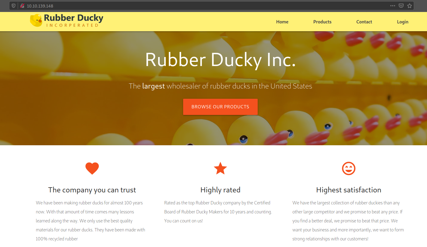 Внимательно просматриваем веб страницу, ищем возможные имена пользователей в контактах, исследуем код страницы на наличие каких-нибудь полезных данных, путешествуем по директориям. Замечаем, что на странице Products номер товара записывается в URL, что может свидетельствовать о наличии потенциальной SQL-инъекции