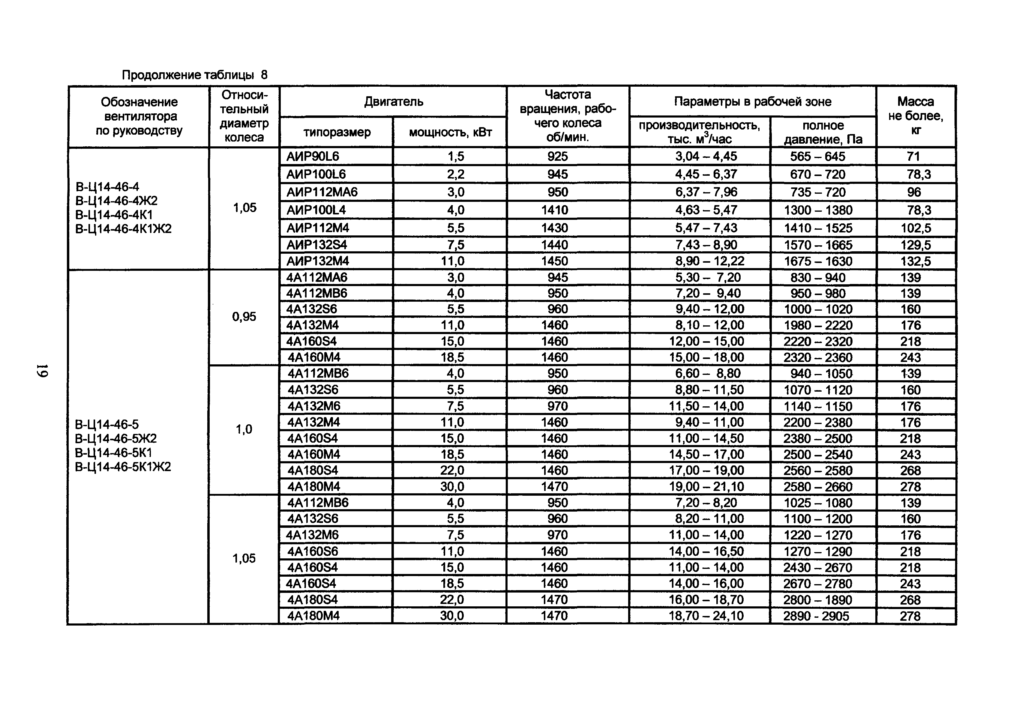 Производительность вентиляторов вр