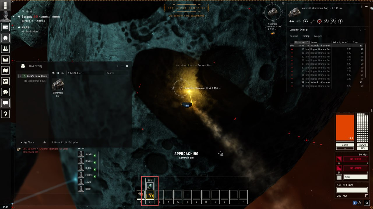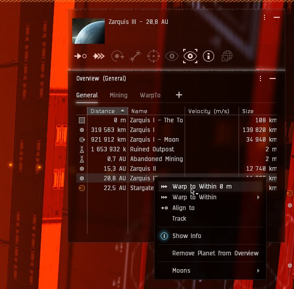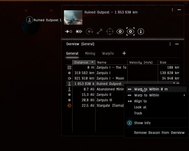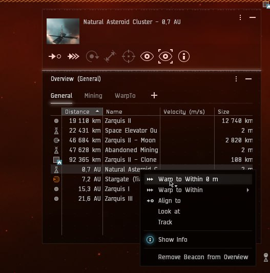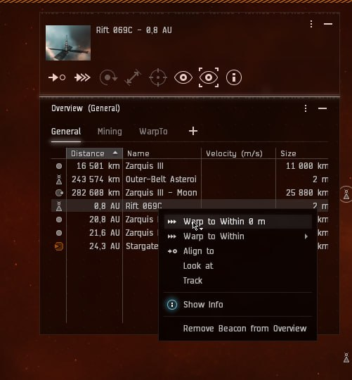 Теперь приближаемся к астероиду через Approach, либо через Warp если цель дальше 150км