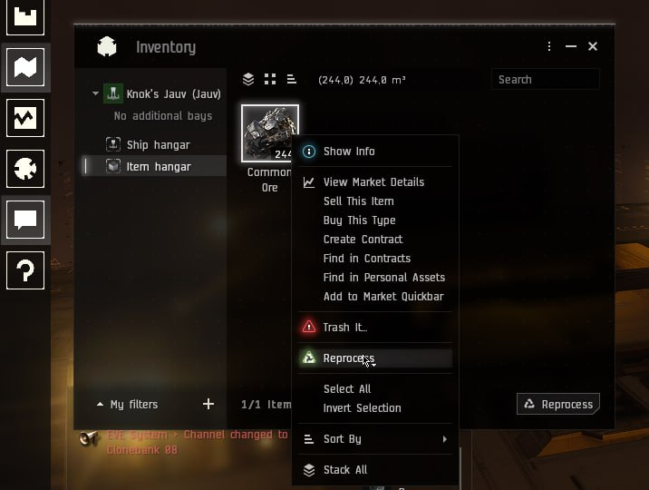 Для этого переносим в инвентарь доков и нажимаем Reprocess