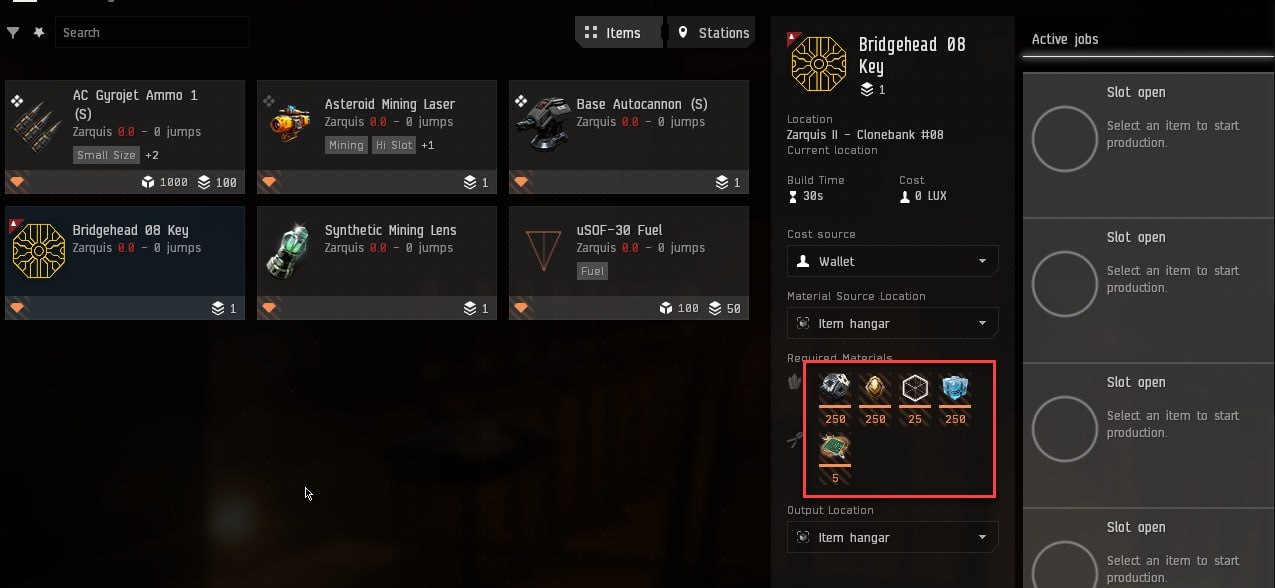 По прилету выкладываем ресурсы в ангар и крафтим ключ