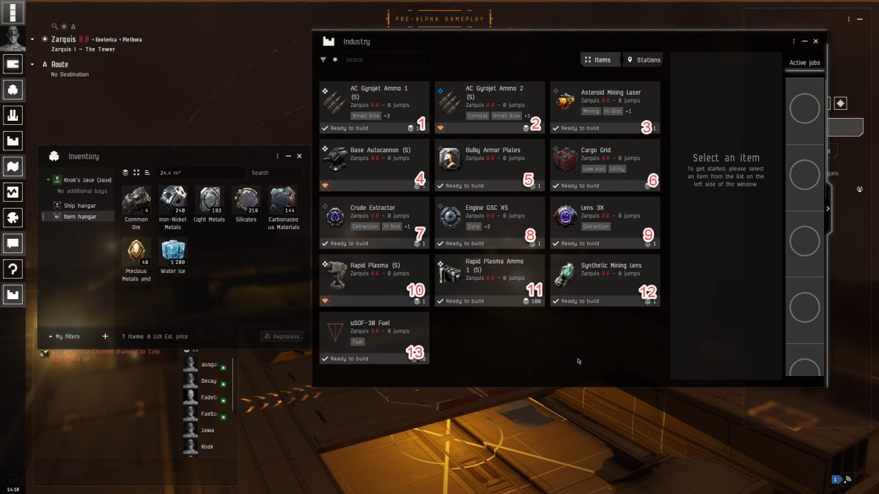 Мы переместились в доки Zarquis 1, где расширенная система крафта. Давайте с ней ознакомимся, но прежде расплавим добытую руду