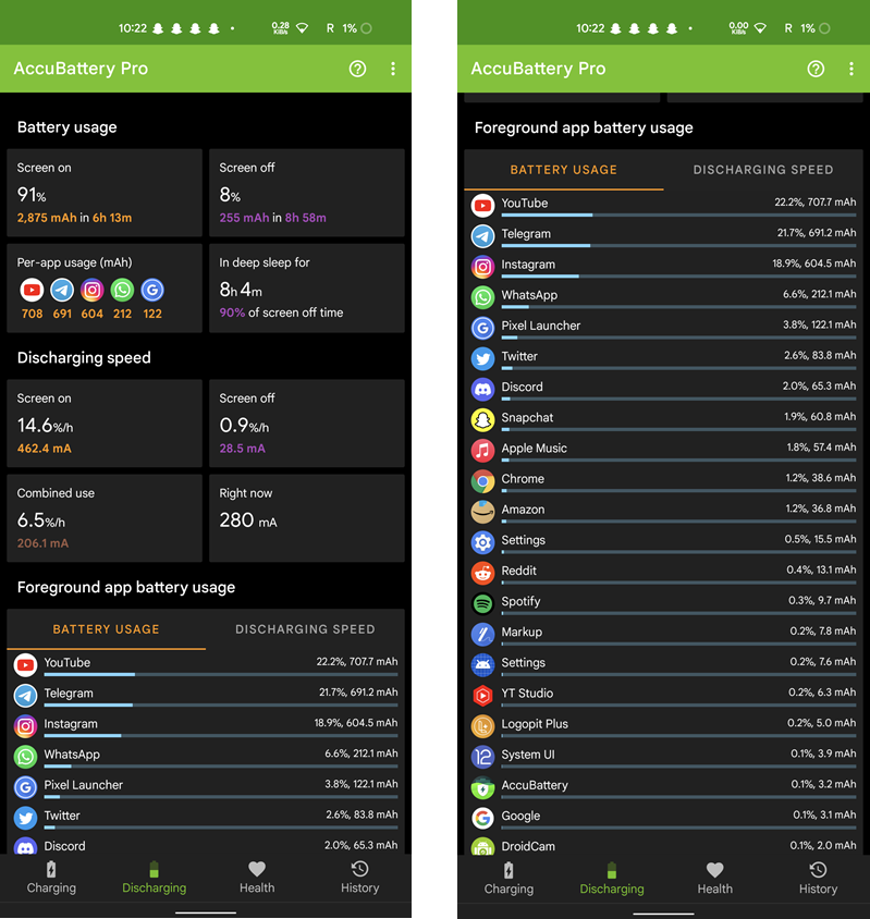 It’s decent enough for casual usage. It lasted me for one full day with 6hrs of Screen-on time. This Usage consists of 1.5hrs of YouTube and Instagram, 1hr of WhatsApp, Telegram and 10-15mins of Snapchat.