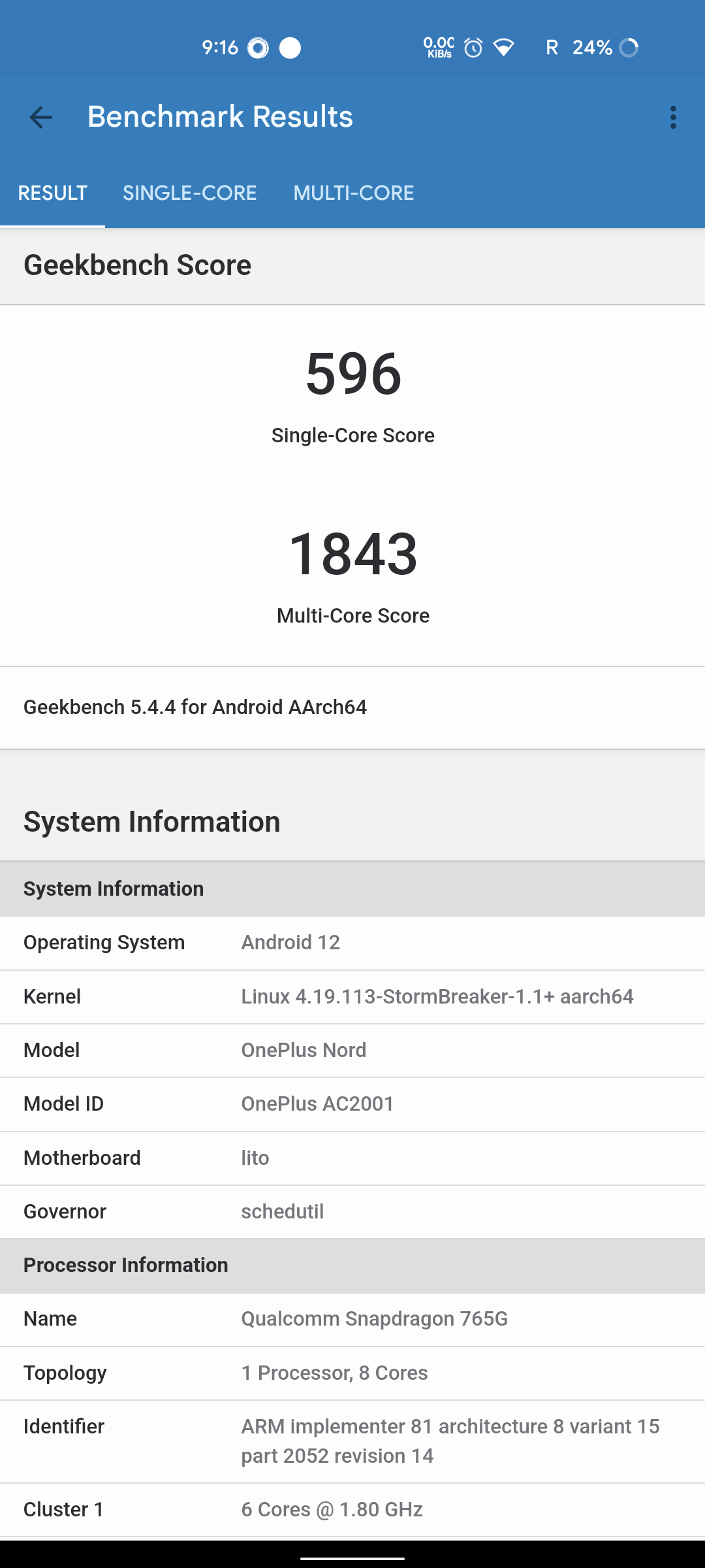 Talking about Geekbench Scores, the Single Core and Multi-core scores for this ROM were around 596 and 1843 respectively. Now, these scores are better than what OOS 11 and PE 12 offer, but do note that these numbers don't reflect real-world usage.