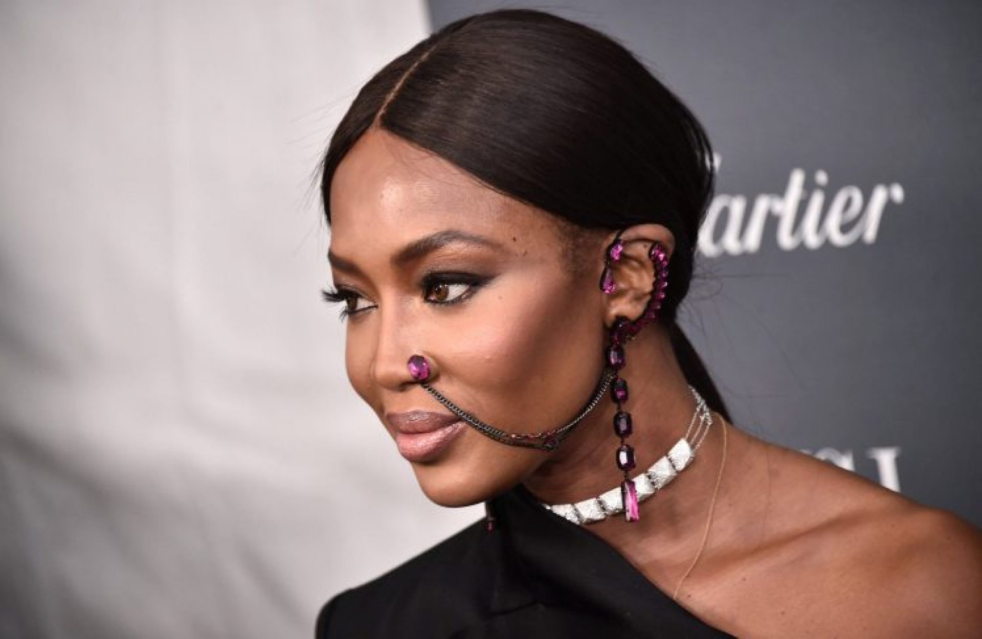 Длинноволосый парик практически сполз с головы Наоми, обнажив совершенно лысый череп супермодели.