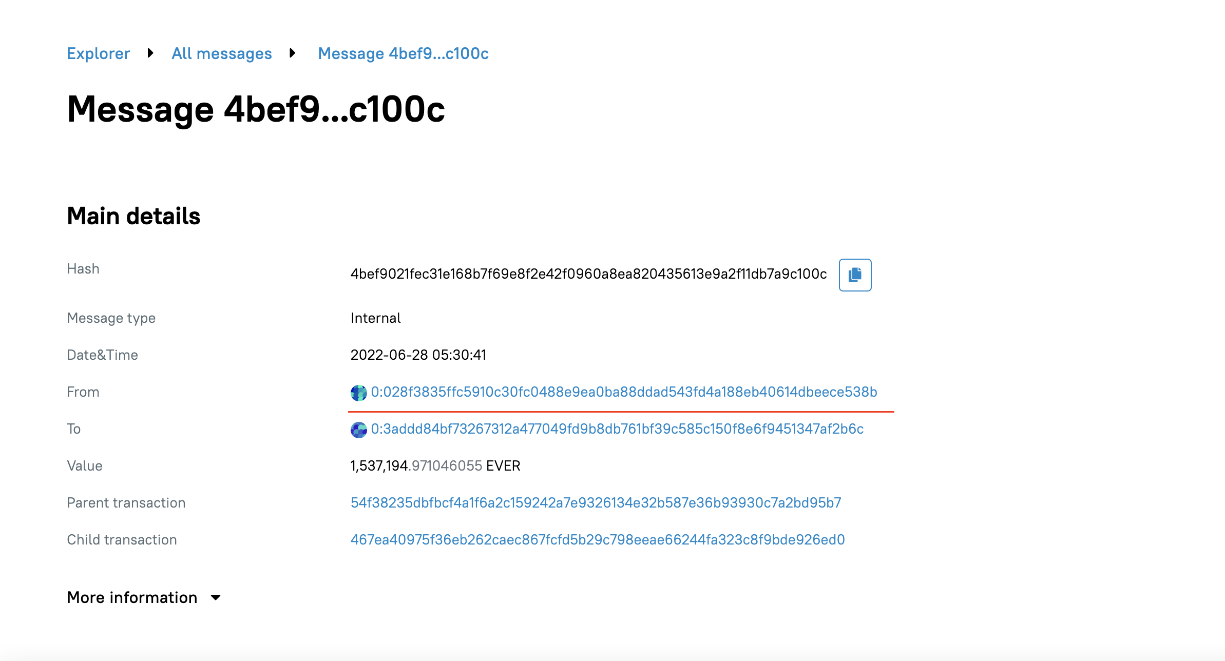 https://everscan.io/accounts/0:028f3835ffc5910c30fc0488e9ea0ba88ddad543fd4a188eb40614dbeece538b