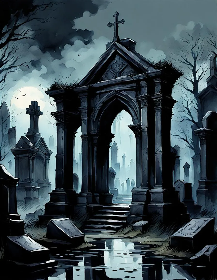 То кромешная тьма опускалась на погост, то в следующий миг лунный свет скользил по безликим стражам могил. Играючи, тени на вуалях рисовали улыбки и смеющиеся глаза. Мгновенье — и это уже хищный оскал. Ещё одно — грусть и сожаление. Тени множились, съедали светлые пятна, пожирали очертания, так напоминавшие человеческие лица. Всё это разом производило куда большее впечатление на Эрика, чем страшные сказки стариков из села. Но самой устрашающей оказалась яма, вырытая на участке, которого с лихвой хватило бы на три огороженные могилы для взрослых. В лунном свете она походила на разинутый рот твари. Вместо зубов — сваленные гниющие гробы, а между ними неподвижный костяной язык.