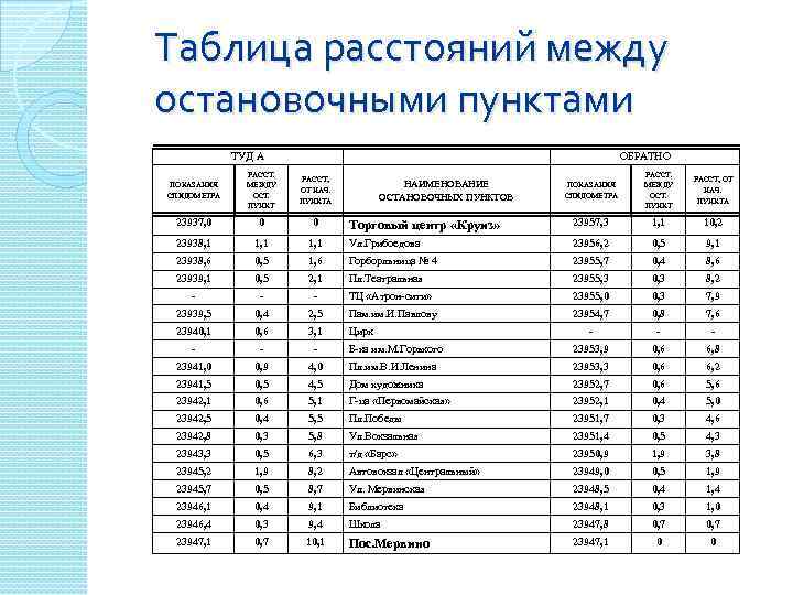 Промежуточные пункты маршрута