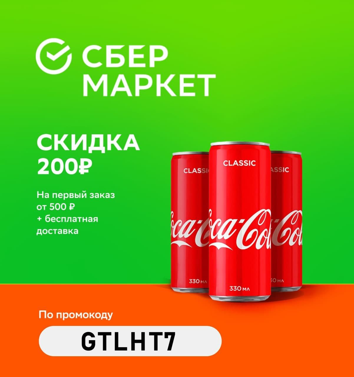 Получаем скидку 200р на первый заказ от 500р + бесплатную доставку в Сбермаркет