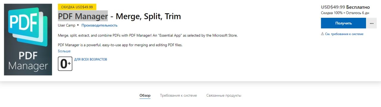 Бесплатно (вместо 1444р) получаем программу для удобного редактирования PDF-файлов - PDF Manager