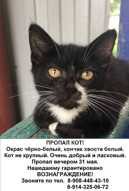 Верхнее Велино пропал кот . Раменский район . . . Вы можете разместить объявление с фото или подробным описанием, добавить к нему информацию о вознаграждении . Это позволит быстро и максимально . . .