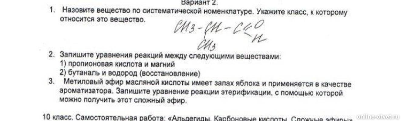 Ответ на вопрос здесь, ответил 1 человек: С какими из перечисленных веществ: магний, гидроксид кальция, бензол, карбонат калия - будет реагировать пропионовая кислота? Напишите уравнения возможных реакций .