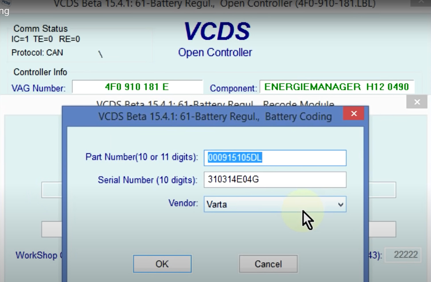 Прописать акб ауди