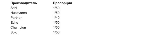 Пропорции масла штиль 180