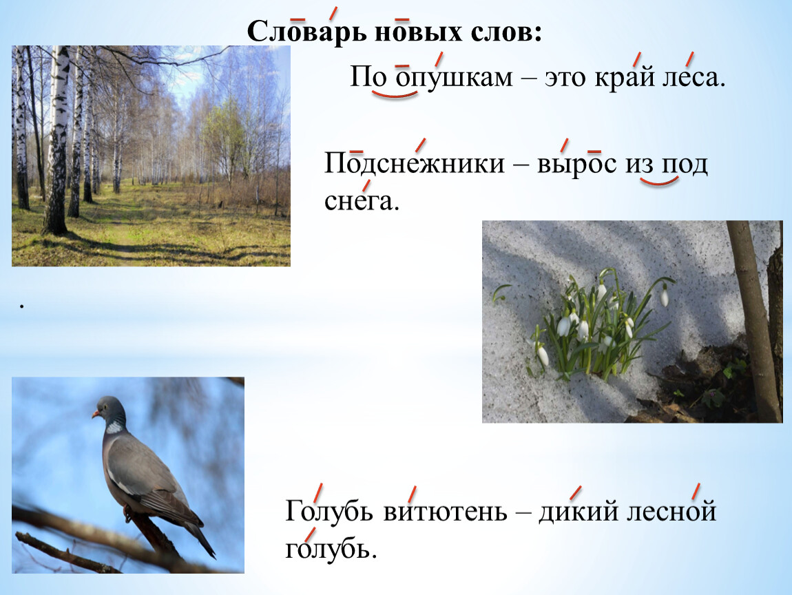 Пропущенные слова голубь