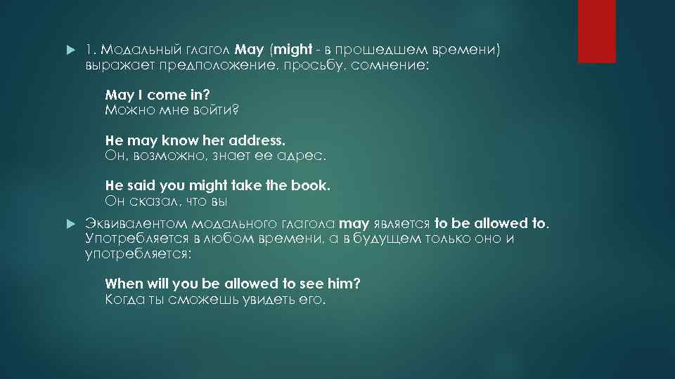 Прошедшее время глагола may