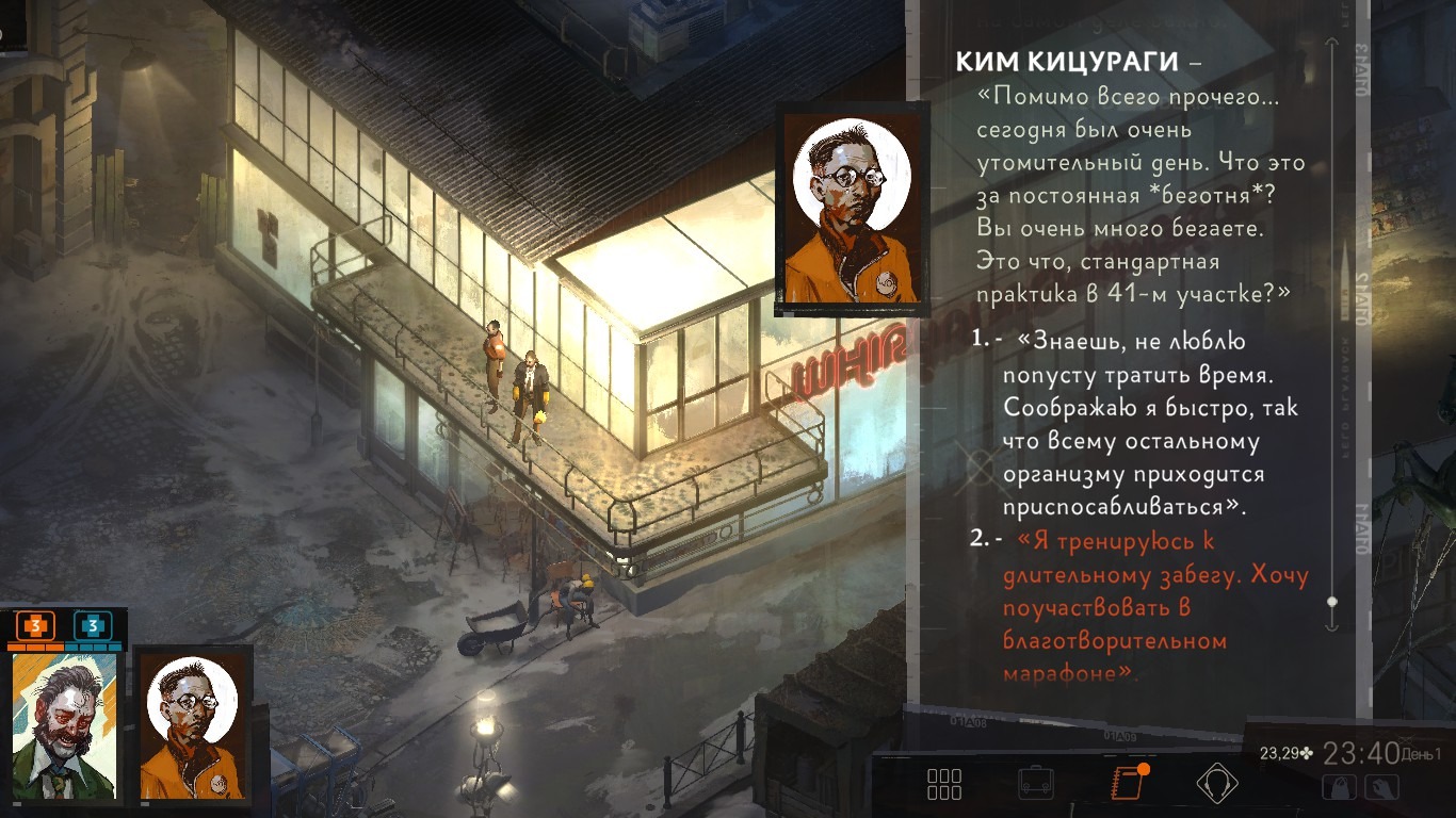 От РПГ в Диско Элизиуме есть дерево (скажем так) развития со множеством навыков, все их можно прокачивать. Но уникальность игры в том, что эти навыки – это части личности детектива, каждая из которых имеет свой голос, и все они общаются и с ним и между собой.