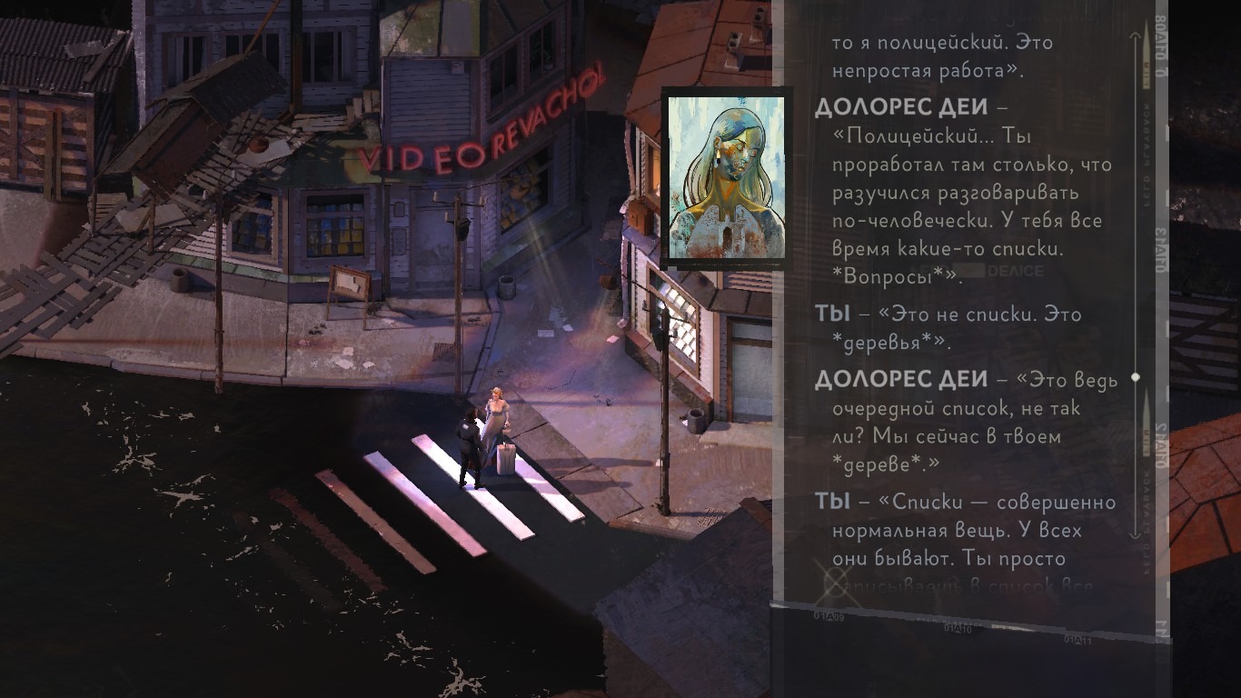 В игре тонны текста. ТОННЫ. И выдержать их можно только потому, что она чудовищно хорошо написана. По всем параметрам – сеттинг (мир, его история и его настоящее), персонажи, диалоги и, конечно, сам сюжет.