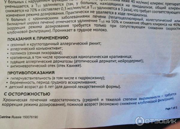 ЦЕТРИН: ДОЗИРОВКА Для взрослых и детей старше 6 лет суточная доза составляет 10 мг, для взрослых — в 1 прием, детям препарат назначают по 5 мг 2 раза/сут . Таблетки запивают небольшим количеством воды . При нарушении функции почек требуется коррекция дозы препарата (как правило, дозу снижают в 2 раза) . Передозировка