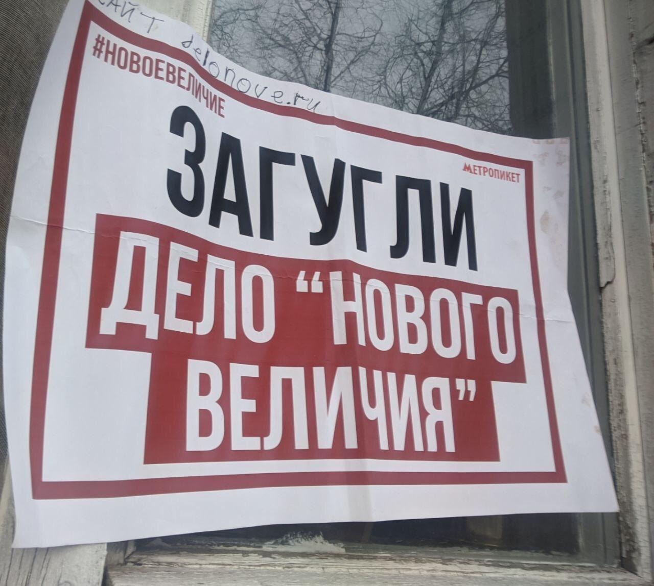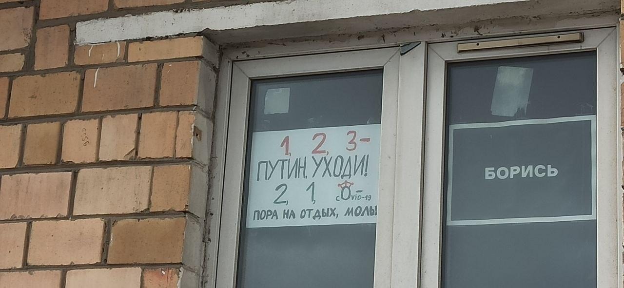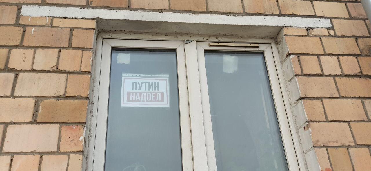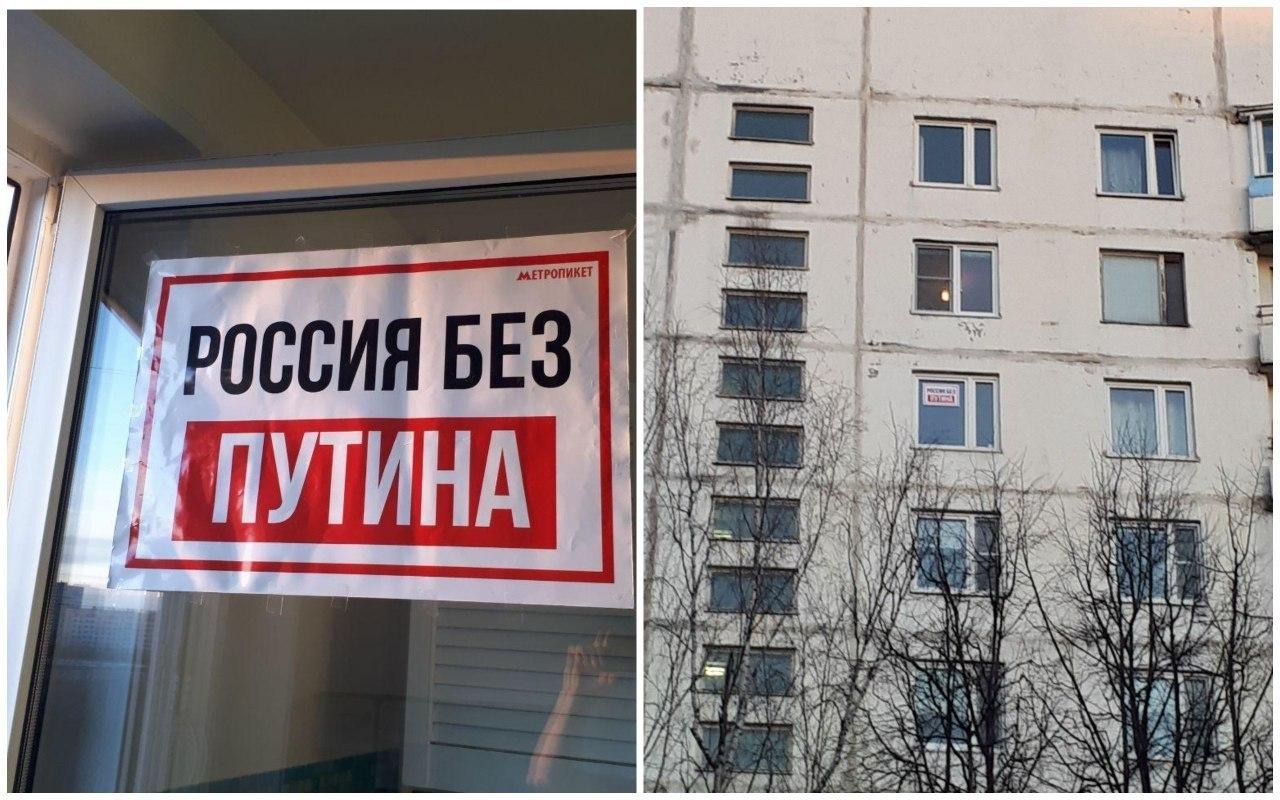 Первый такой пикет был 19 марта. Активистка метропикета - Александра Калистратова повесила на окно надпись из нескольких листов «Путин уходи».
