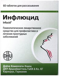 Инфлюцид . Препарат выпускается в виде таблеток и раствора для перорального применения . Он содержит аконит, ипекакуану, брионию, фосфор, посконник, гельземий, евпаториум перфолиатум .