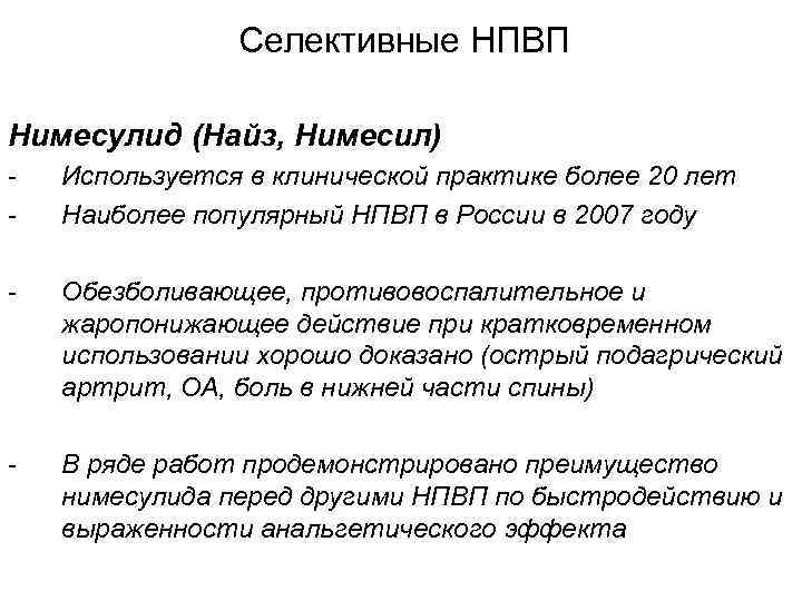 Противовоспалительные препараты нимесулид