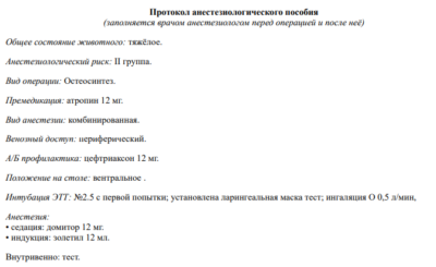 Протокол анестезиолога
