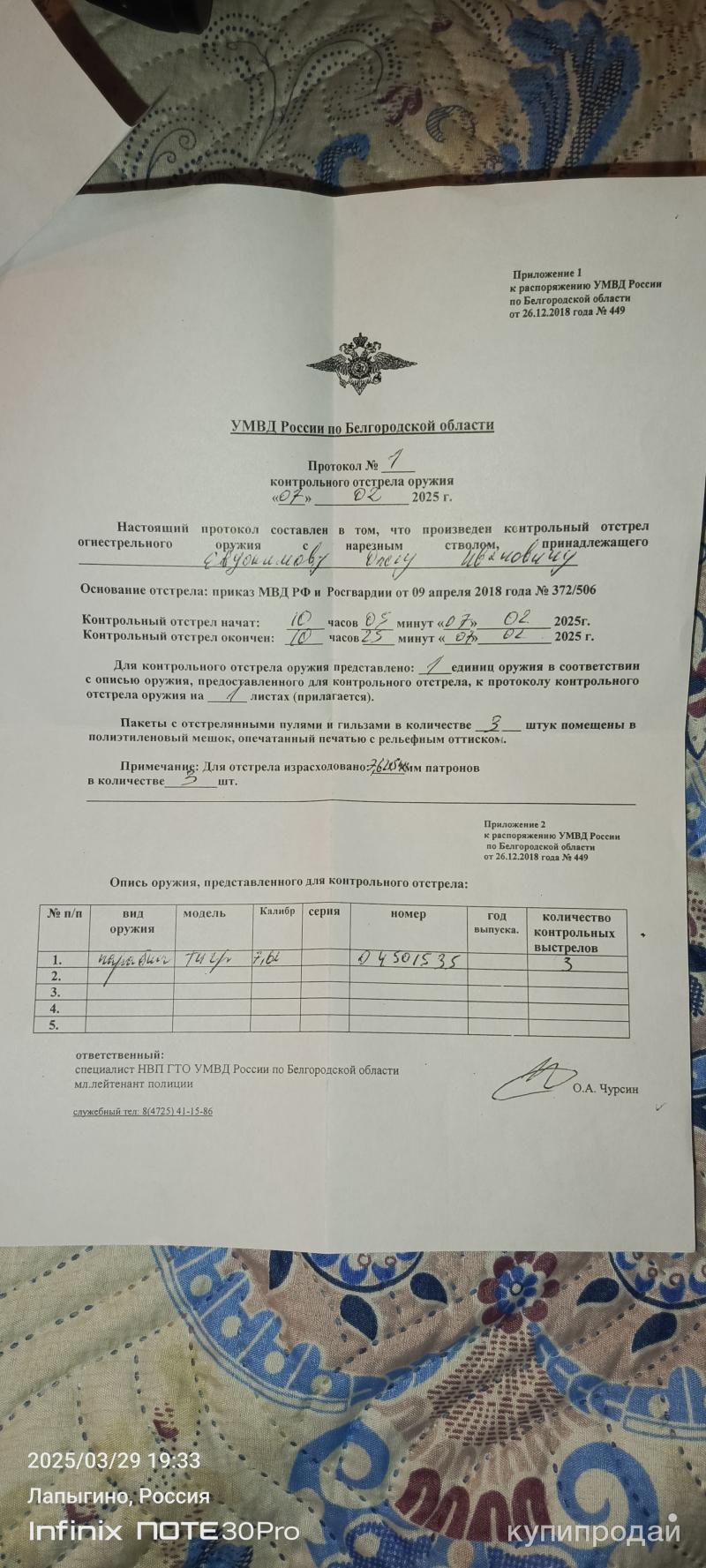 Протокол контрольного отстрела 137 фотографий