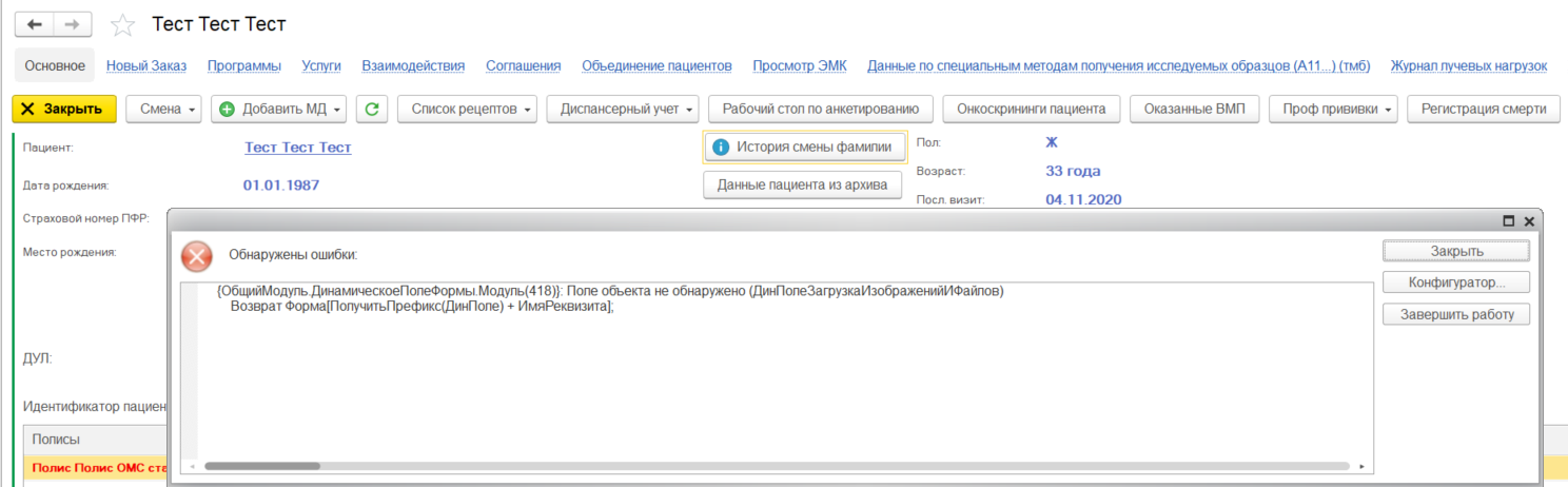 Протокол ошибок 1с