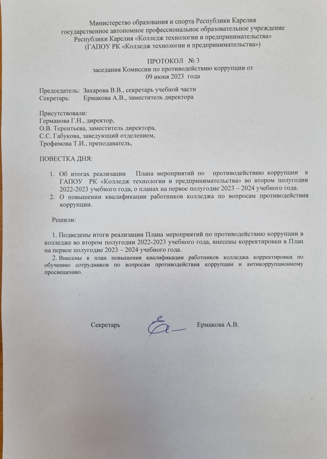 Протокол совета по коррупции