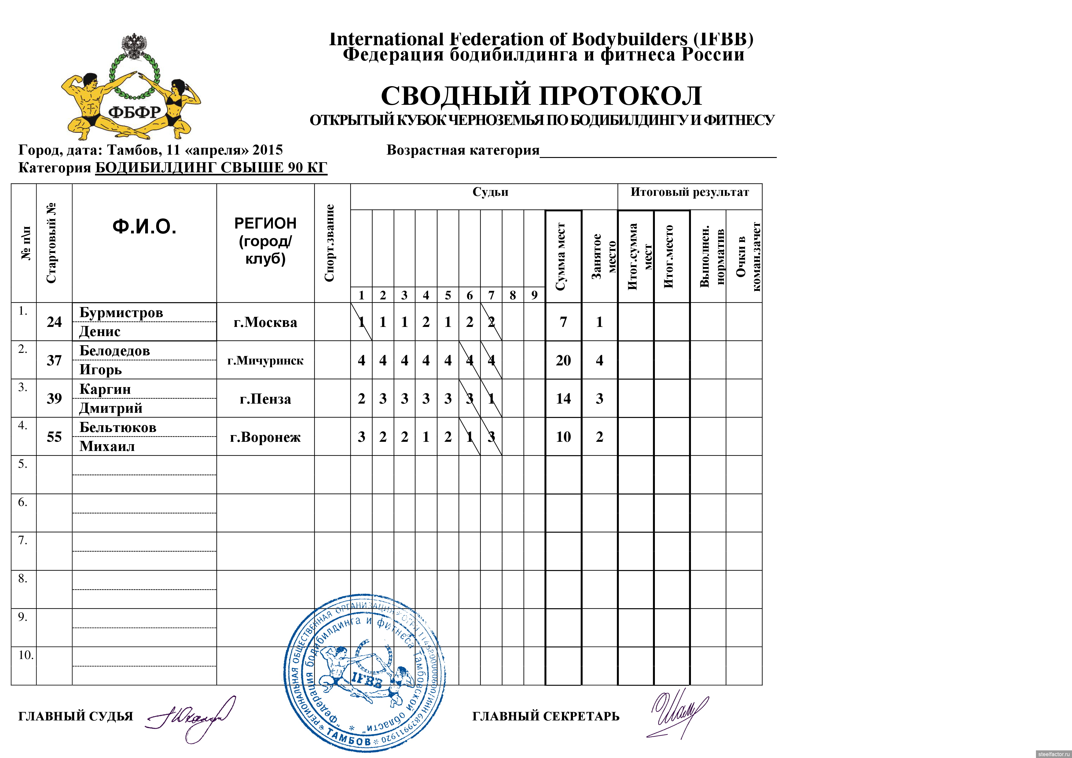 Протокол судейства 143 фотографий