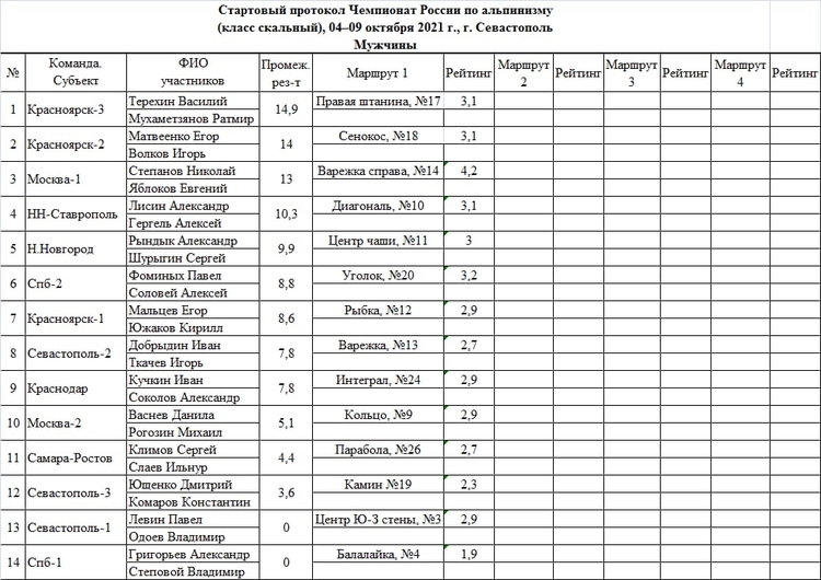 Протокол участников соревнований