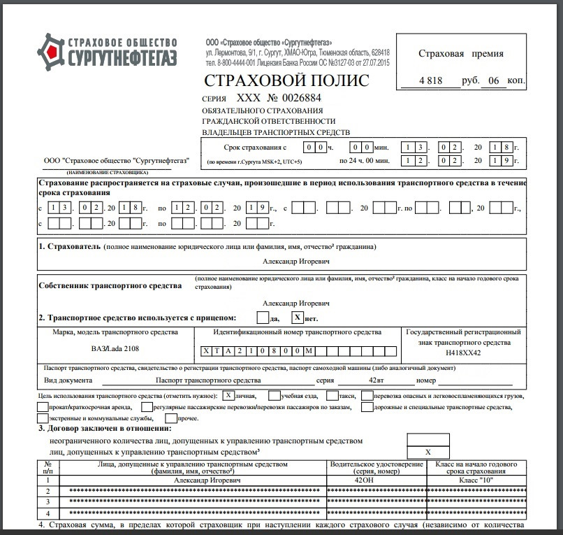Проверить действующую страховку