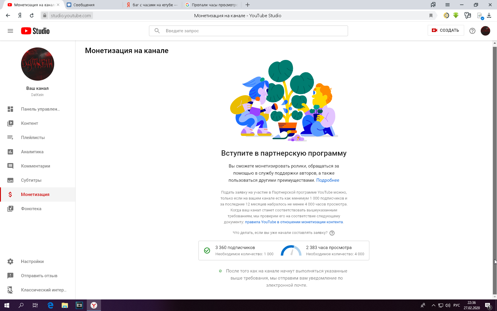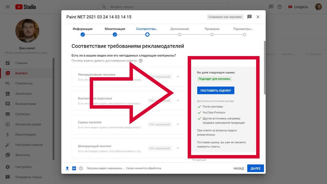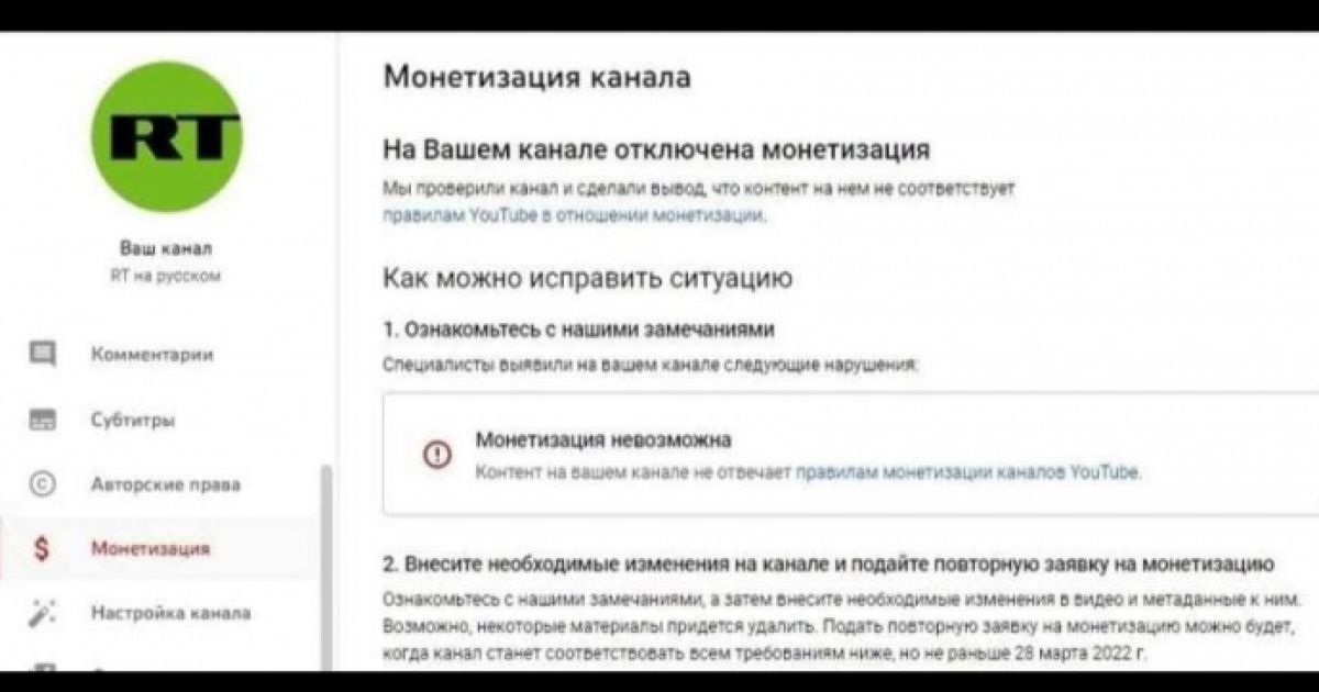 Проверить монетизацию канала