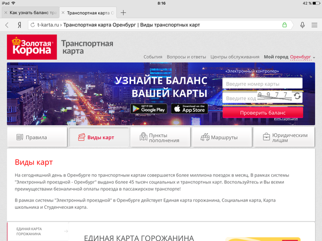 Проверить остатки социальной карты