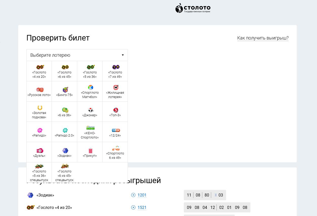 Проверить результаты розыгрыша столото