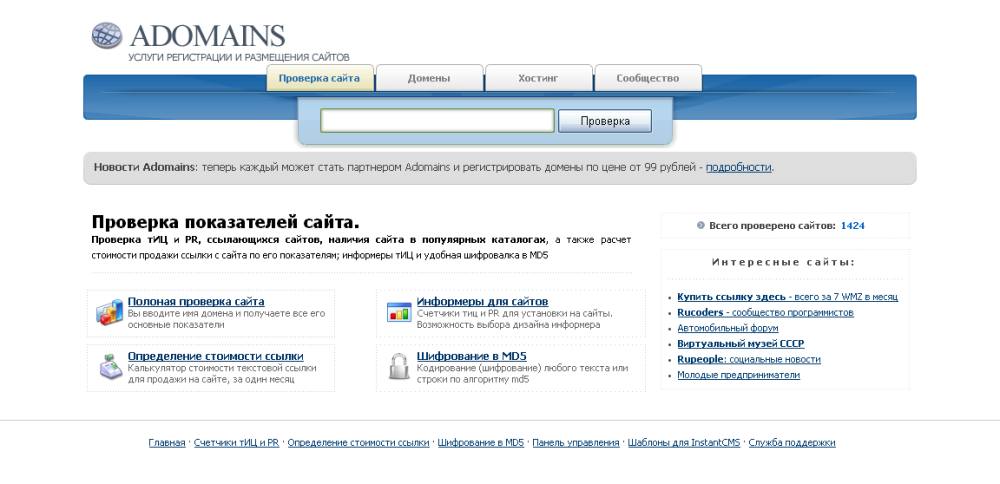 Проверить сайт в строке