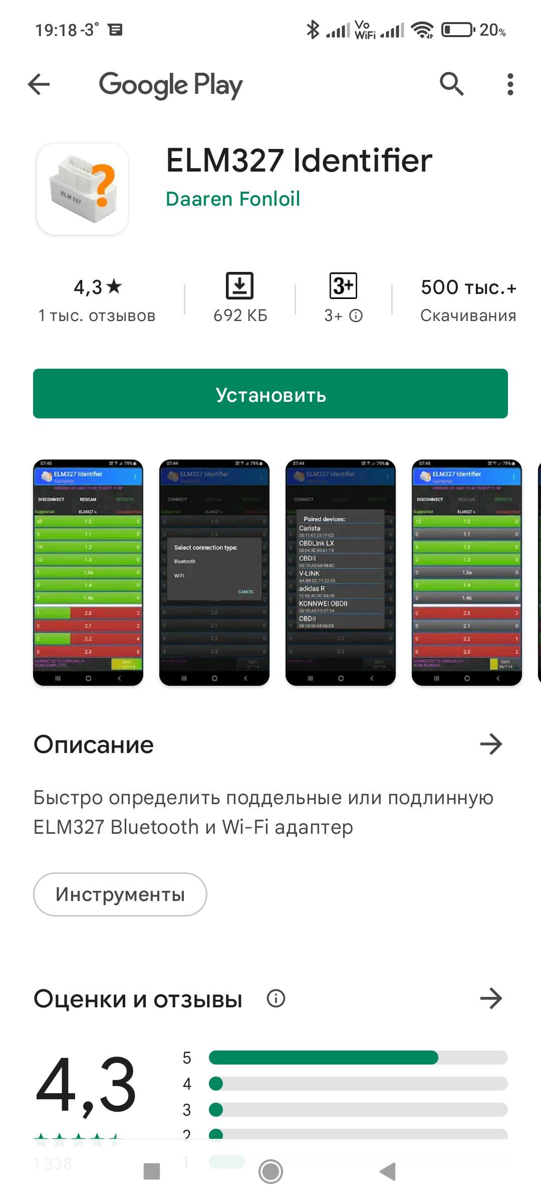 Для проверки нам понадобиться бесплатная программа для Андроид — ELM327 Identifier