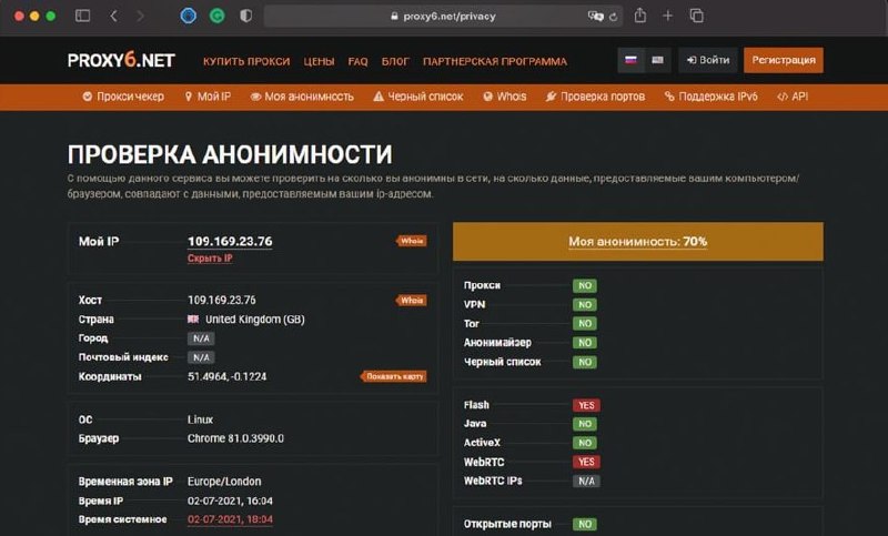 Проверка анонимности в интернете