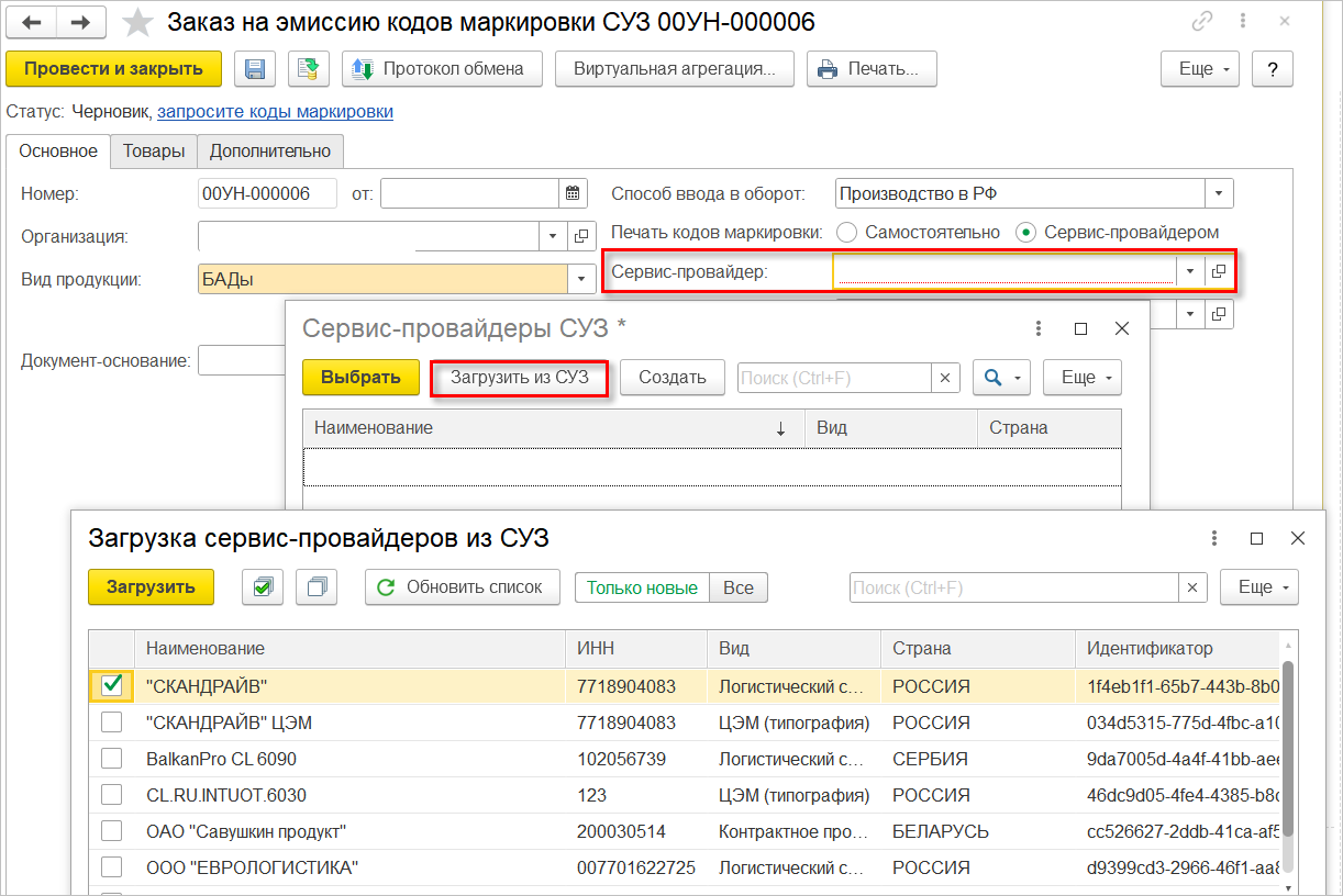 Проверка кодов маркировки в 1с