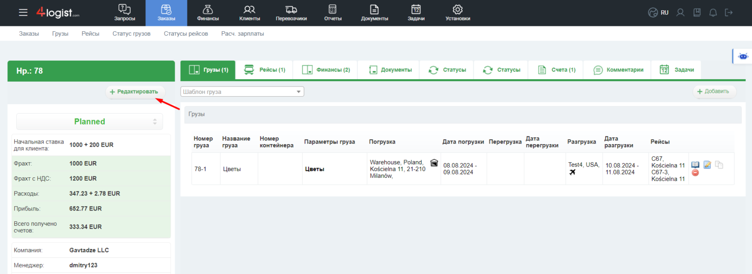 Проверка статуса груза