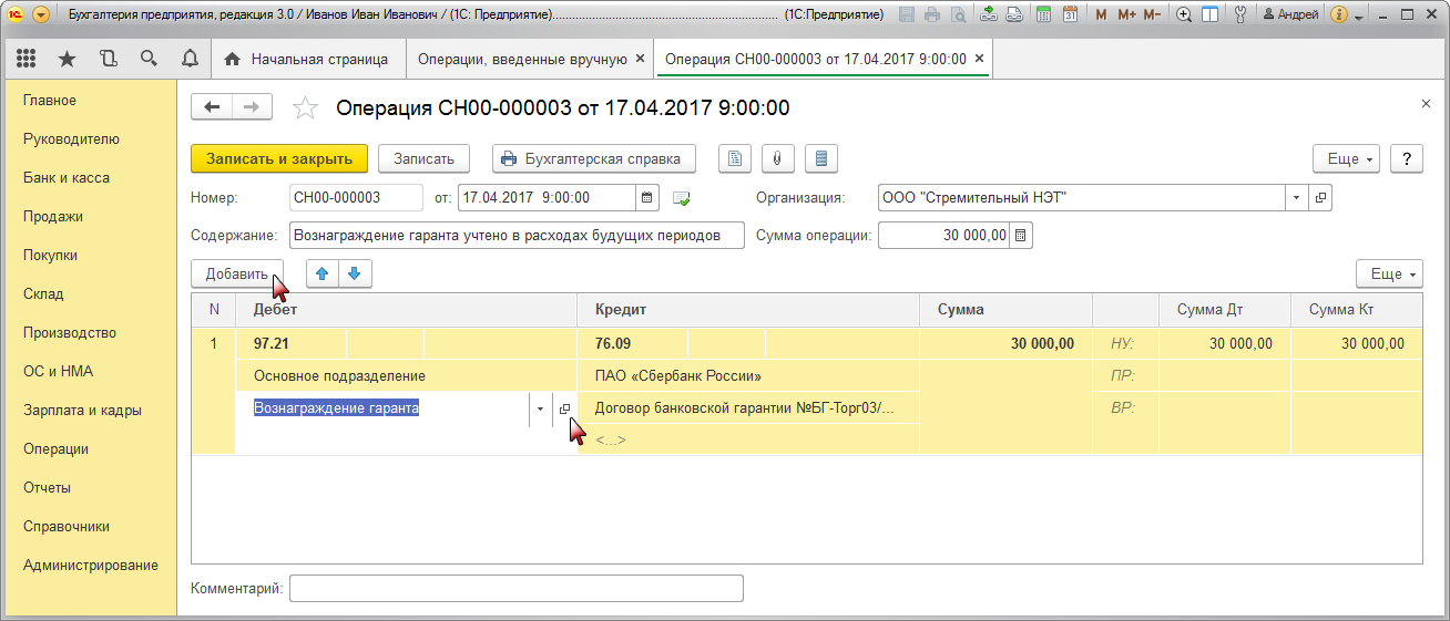 Проводки по аренде в 1с 8.3