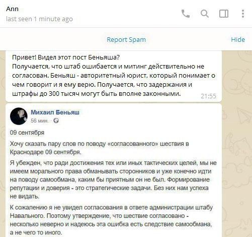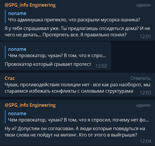 @SPG_infoВ преддверие всероссийского митинга 9.09 числа, администраторы различных чатов СПГ начали получать странные сообщения, с советами не ходить на данное мероприятие.