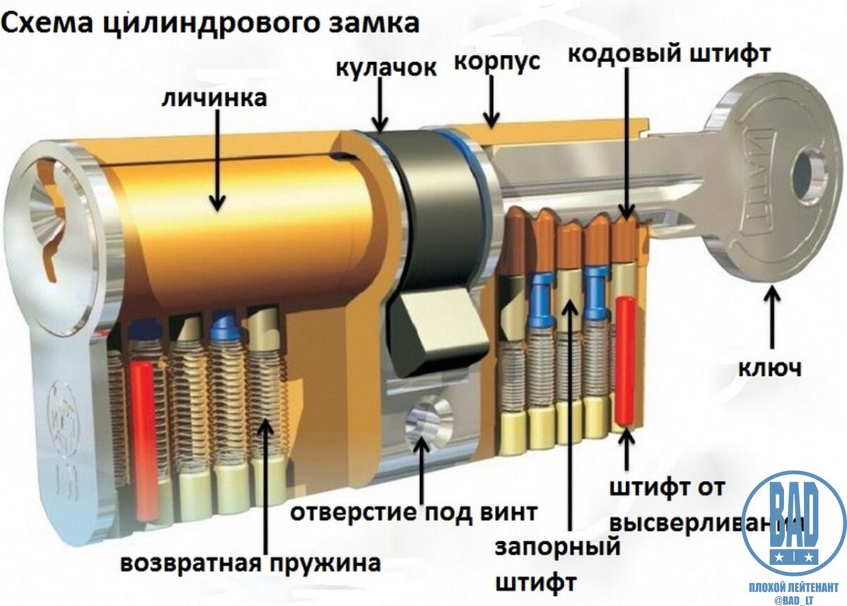Не буду грузить тебя слесарными тонкостями, главное - сформировать понимание, того, что замок будет открываться в том случае, если узор используемого ключа спозиционирует штифты в ряд, и они не будут препятствовать повороту ключа. В современных замках применены различные технические решения, усложняющие жизнь взломщикам, однако принцип работы их все тот же.