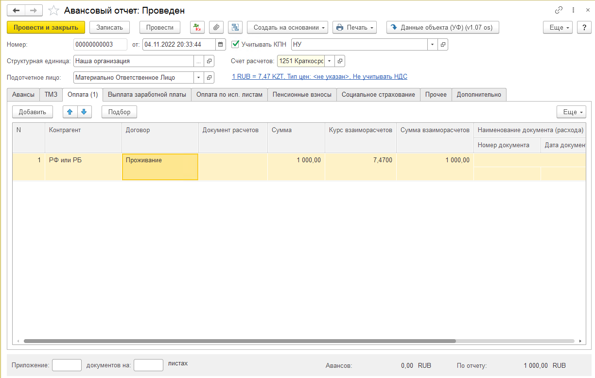 Проживание в гостинице авансовый отчет