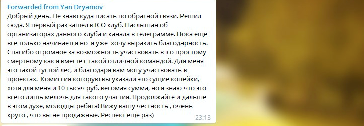 8) Ну и напоследок немного реальных отзывов от участников наших ICO-клубов: