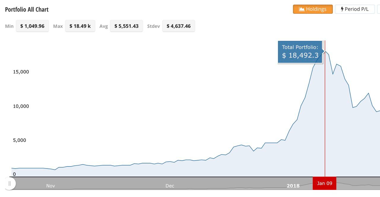 Вот ссылка на открытую статистику по этому списку - https://www.cryptocompare.com/portfolio-public/?id=322687 (выкладывали её ранее). Рост в 11,5 раз на пике!