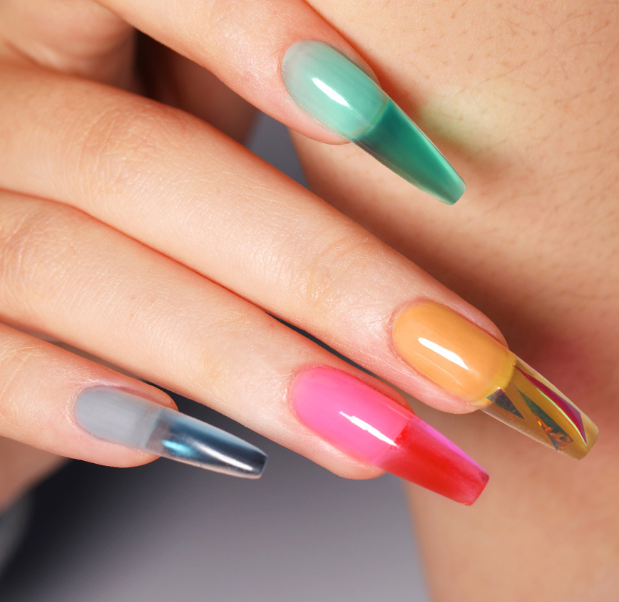 Прозрачные цветные ногти