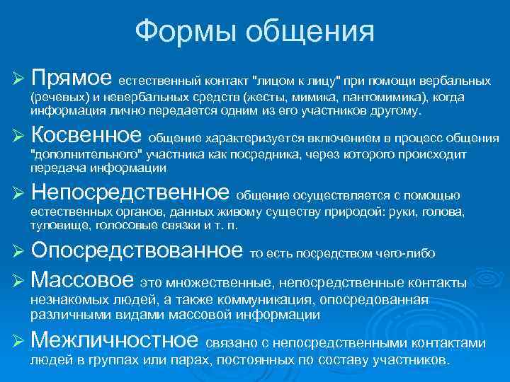 Прямое общение предполагает